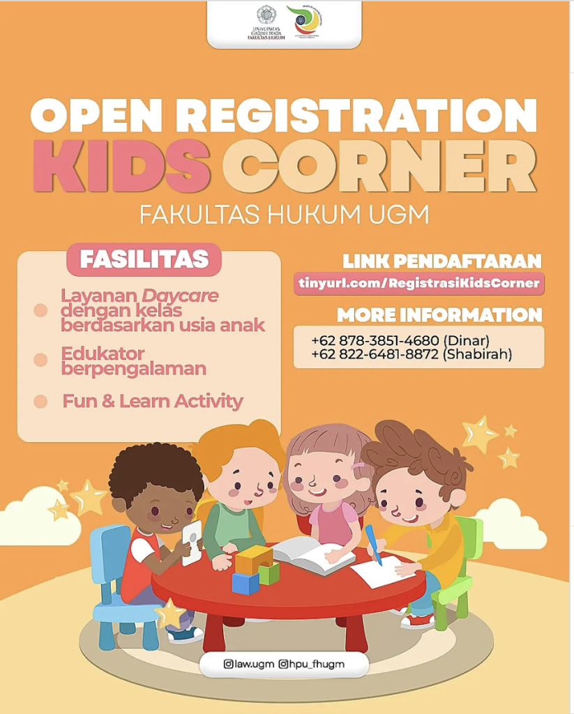 In 2024, UGM further expanded its childcare support network with the opening of the Faculty of Law Kids Corner, a dedicated space that includes daycare services for students, lecturers, and staff across the Social Sciences Cluster. This new facility ensures that academic activities can continue smoothly while families receive reliable, campus-based support.