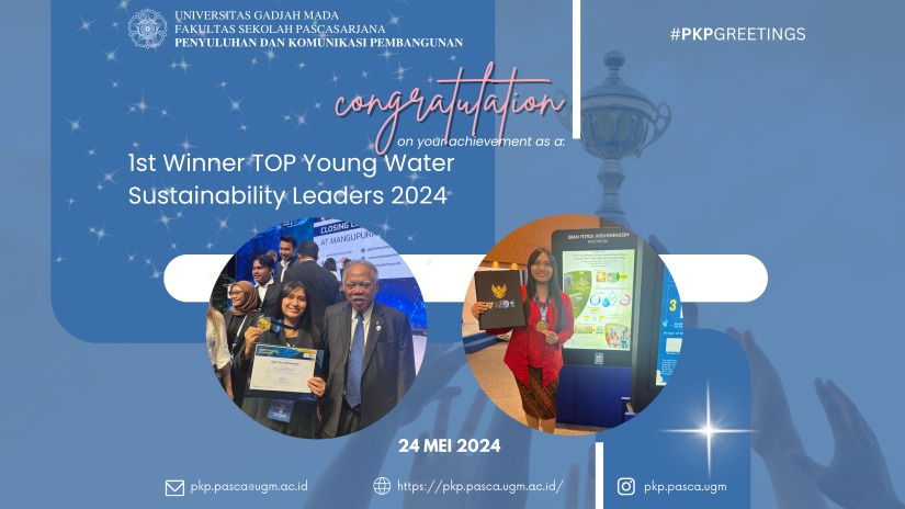 In 2024, Fitria Widhiningsih, S.P., M.Sc., a young lecturer from the Faculty of Agriculture at Gadjah Mada University, won first place in the Young Water Sustainability Leaders 2024 competition. She achieved this recognition after presenting her research at the 10th World Water Forum, held in Bali on May 23, 2024. Her study, compiled in a paper entitled ‘Fostering Water Conservation Awareness among Gen Z through Social Learning: Insights from the Mini T-ReKs Initiative in Yogyakarta, Indonesia’, highlights the potential for strengthening water conservation education within local communities. Through this work, she aspires to inspire younger generations to expand and disseminate knowledge on water conservation practices in their respective environments.