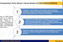 UGM has measured and set targets for more sustainable commuting in Rector’s Decree Number 911/UNLP/SK/HUKOR/2018, encouraging walking, cycling, use of campus shuttles, and other low-emission transportation options.