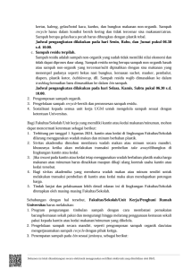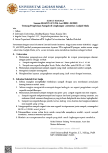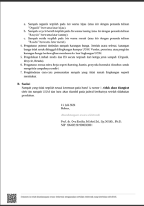 Based on the Circular Letter Number 8846/UN1.P.V/Dit-Aset/TR.01.02/2023, it is conveyed that there is a need for sorting organic and non-organic waste (in the form of plastic, paper, cans, bottles, cardboard, and dry non-organic food wrappers). Faculties, schools, and work units are to limit the use of disposable goods and packaging, and avoid environmentally unfriendly waste management methods such as burning.